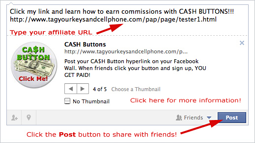 you can copy your Affiliate hyperlink, post it on your Facebook Wall and choose the |